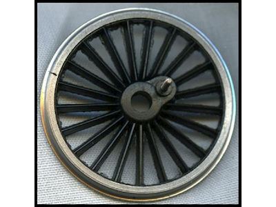 During the moulding process a 14BA steel crankpin is encapsulated within the crankpin boss. Wheels are supplied with either OO, EM or 18.83 axles (which unless stated is 1/8" diameter) together with nuts and bushes .